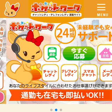 | 時給 3000~7200円 / 日払いOK 電話、メール、TV電話でやり取りするお仕事。専用アプリを使うと通話料がかかりません。 ログインするだけで報酬が貰える「デイリーチャンス」あり。毎日ログインしましょう。 公式サイトを見る |